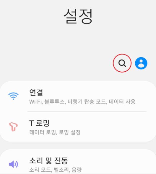 1. '설정'에 들어가서 돋보기 버튼을 눌러줍니다.