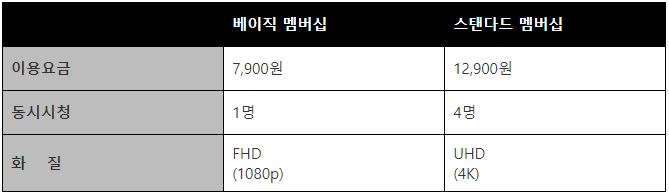 넷플릭스 왓챠 가격 및 화질