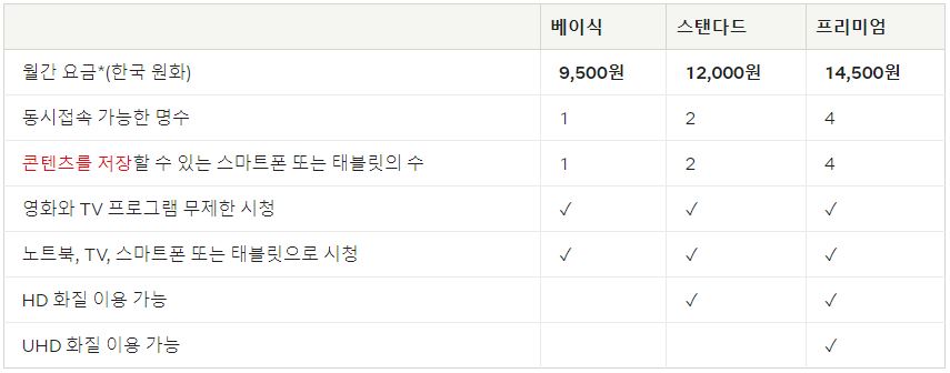 - 자체 제작 고퀄리티 드라마 및 영화 시청 가능(킹덤, 종이의 집, 오렌지 이즈 더 뉴 블랙, 기묘한 이야기, 위쳐, 중독된 도시 등등)