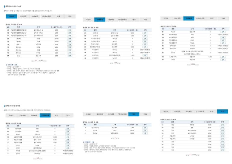 가구류, 주방용품, 가전제품, 냉난방 제품, 악기, 기타 등 본인의 폐기물에 맞게 선택하시면 되겠습니다.