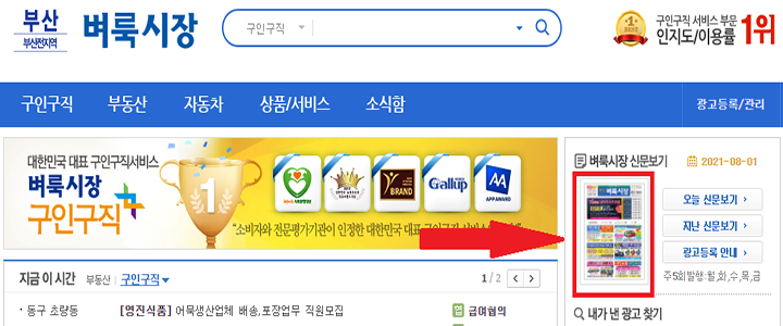 ▲ 그러면 우측에 [벼룩시장 신문보기]가 보이게 될 것입니다. 신문 모양을 눌러주세요.
