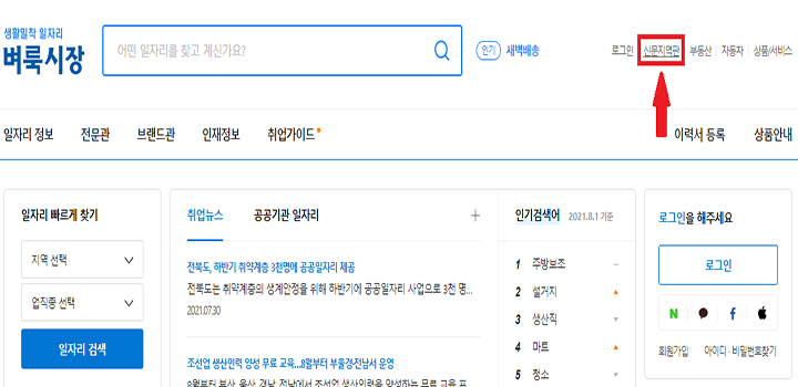 ▲ 그럼 벼룩시장 공식 홈페이지가 나오게 되는데요. 우측 상단에 보시면 [신문 지역판] 탭이 있는데 그것을 눌러주세요.